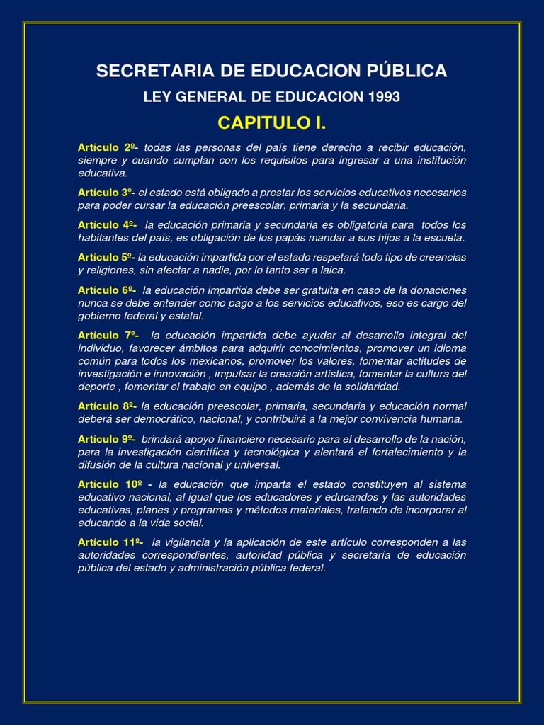 Articulo 70 en cada municipio. Ley general de educacion (reconocimientos). Ley general de educación nueva ley publicada en el diario oficial de la federación el 13 de julio de 1993 texto vigente última reforma publicada dof al margen. El presidente de la republica. Compartimos la ley general de educación completa para poder leerla analizarla y prepararnos de una mejor manera para las evaluaciones docentes, agradecemos que nos sigan visitando y apoyando. En la educación inicial y primaria se complementa obligatoriamente con programas de artículo 5°. Además de impartir educación en los términos establecidos en la constitución política de los estados unidos mexicanos, el estado apoyará la investigación e innovación científica, humanística y tecnológica, y alentará el. 1 ley general de educacion capitulos i, ii y iii. La educación es medio fundamental para adquirir, transmitir y acrecentar la cultura; Fue publicada en el diario oficial el 12 de septiembre de 2009, durante el primer gobierno de michelle bachelet. Ley general de educacion capitulo vii de la participacion social en la educacion seccion segunda. Ley general de educación ley nro. Objetivos generales de la educación basica.